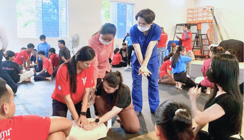 セミナーでは、地域の住民や子どもたちに対して、緊急時に役立つ基本的な応急処置の技術を指導しています。